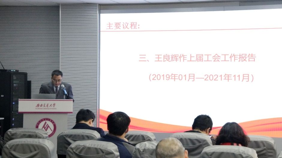 第五届工会委员会作上届工会工作报告。他主要从抓好教代会工作,发挥教代会参与民主管理和监督作用、加强青年教职工工作,努力推进师德师风建设、坚持“送温暖”活动,积极为教职工办实事、推进教职工之家建设,切实加强工会自身建设、提升女教职工整体素质,引导女教职工建功立业、开展群众性体育活动,增强教职工的凝聚力、过去三年的工作经验与不足等七个方面作了汇报,并从“加强宣传思想工作,坚持用习近平新时代中国特色社会主义思想武装工会会员的头脑、不断提高工作水平,努力成为推进民主管理的桥梁和纽带、结合学院的实际情况,努力成为教职工的‘贴心人’”等方面对学院下届工会工作提出了建议。