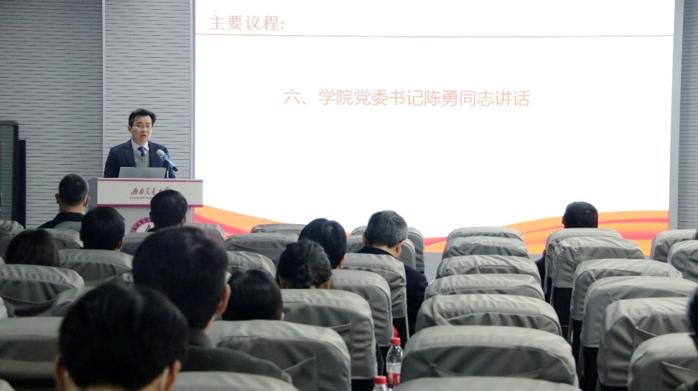 学院党委书记陈勇同志在学院本次“双代会”最后作了重要讲话。他指出,从党和国家事业发展的高度、从高等教育和学校发展的角度、从学院建设与发展的维度来看,本次“双代会”是在一个十分重要的时间节点召开的。不论是从事业进步的高度还是教职工自身发展的维度,新形势、新任务对学院的管理体系、治理结构、管理与服务效能等都提出了更高要求,教职工对学院也有着更多、更大、更新的期待。在完成新任务、达成新目标的过程中,需要各位代表的积极参与和大力支持,需要学院工会发挥民主管理、凝聚人心等职能与作用。