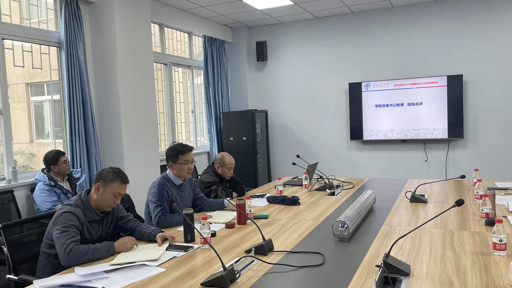 2021年度学生工作汇报会在九里校区J3310会议室举行,学院13位辅导员参与汇报。学院党委书记陈勇、副院长李涛、党委副书记章春军、专业教师代表屈树新、翁亚军、刘艳、孟凡彬、蒋小松、卢晓英、李中、黄银听取了汇报。