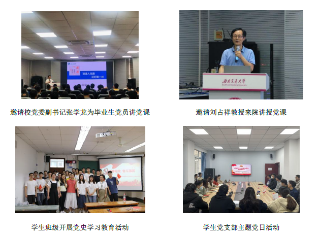 重视总体谋划与推进,制订实施方案,成立工作组,做好顶层设计与动员部署,明晰“六个结合”、“十大任务”,分阶段推进党史学习教育。用好全方位、多角度的学习方式,重视讲学引学与指导,培养学生自主学习意识。邀请校党委张学龙副书记、马克思主义学院刘占祥教授等专家教授为研究生党员讲授党史学习教育专题党课;组织集体研学研讨10余次,组织学生支部主题党日活30余项;立项校级“示范性学生党支部特色活动”3项,获评校级“优秀党日活动案例”1项,研究生第十二党支部成功入选色情文学