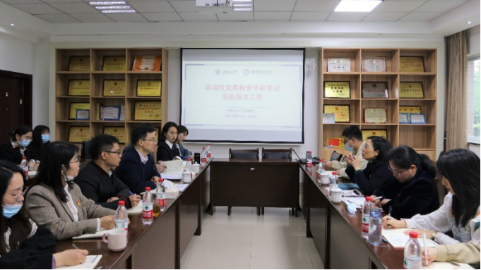 对杨爱华副书记一行的到来致以热烈的欢迎和诚挚的感谢。他表示,杨爱华副书记“传递爱心”的教育理念令人深受感染,为学院的人才培养工作注入了新的内涵和活力。陈勇和章春军分别就学院工作向杨爱华副书记作简要汇报。