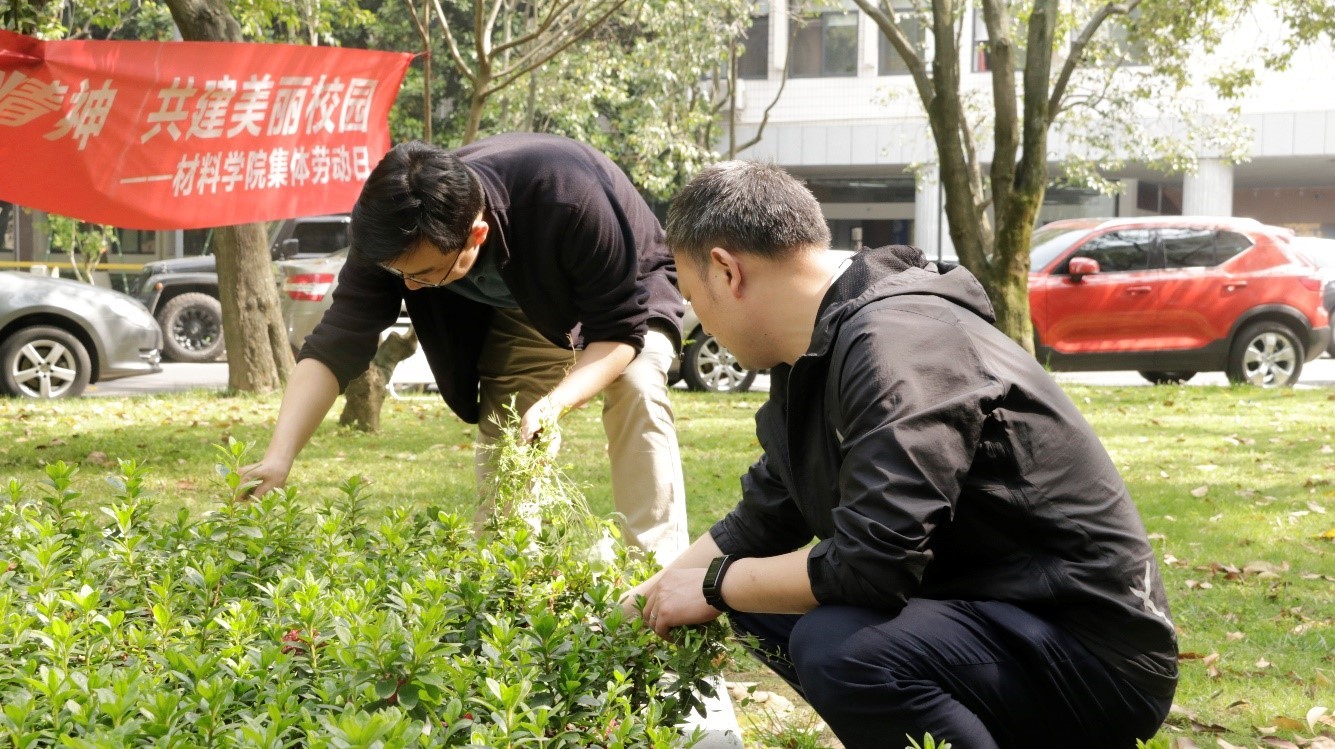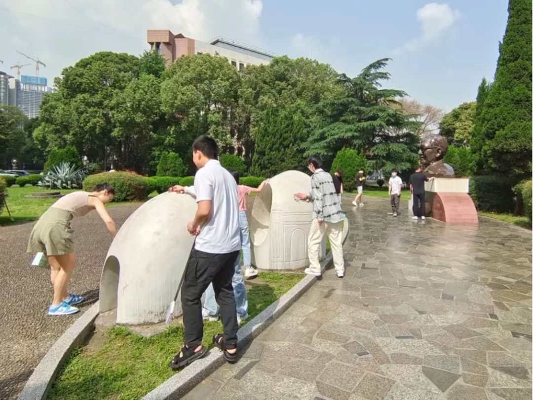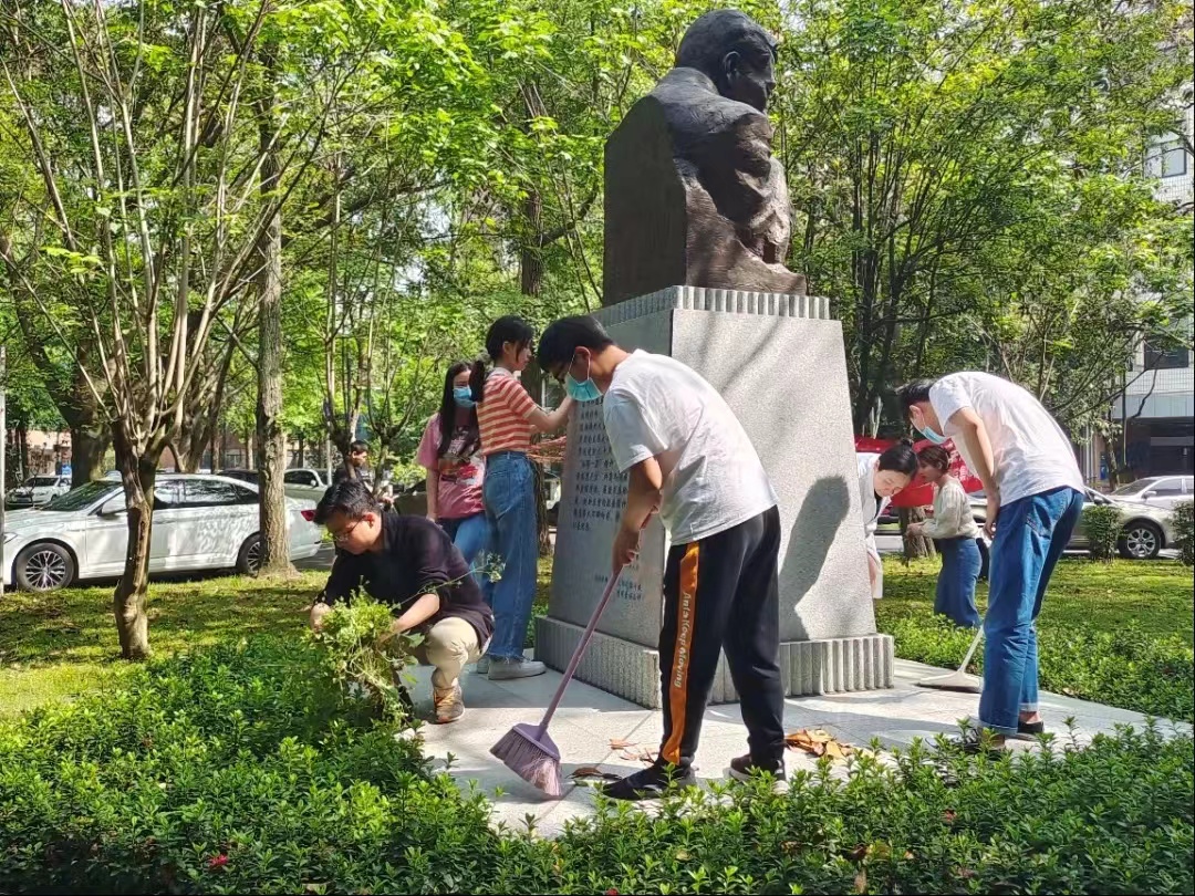 暮春暖阳日,劳动正当时。启动仪式结束后,在陈勇书记和章春军副书记的带领下,大家拿着打扫工具认真地清扫地上的垃圾,整理自行车棚,清洁了三号楼前陈能宽院士塑像和图书馆前茅以升老校长塑像,拔除绿地上的杂草……,参加劳动的师生脸上洋溢着“劳动最光荣、最幸福”的表情。