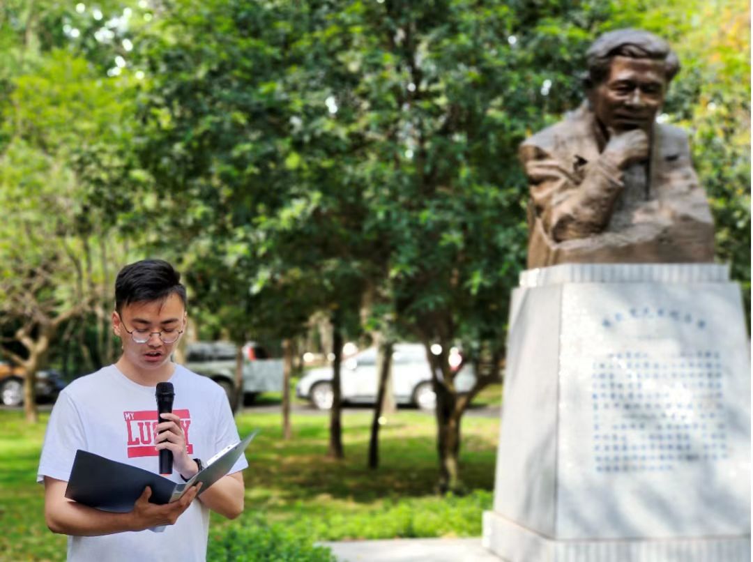 启动仪式结束后,举行了基于“科学家精神传承”的劳动实践教育活动第一堂“微党课”。三位学子在陈能宽雕塑前分享陈能宽院士的小故事以及他们的学习感受,他们生动而有情感的讲解,深深的感染着在场的每个人。