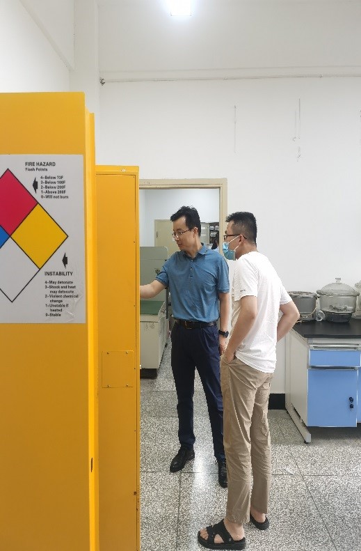 端午节期间,朱旻昊院长、陈勇书记在岗值班的过程中,对3号楼的实验室进行了重点检查,并对发现安全隐患的实验室进行了“一对一”提醒。