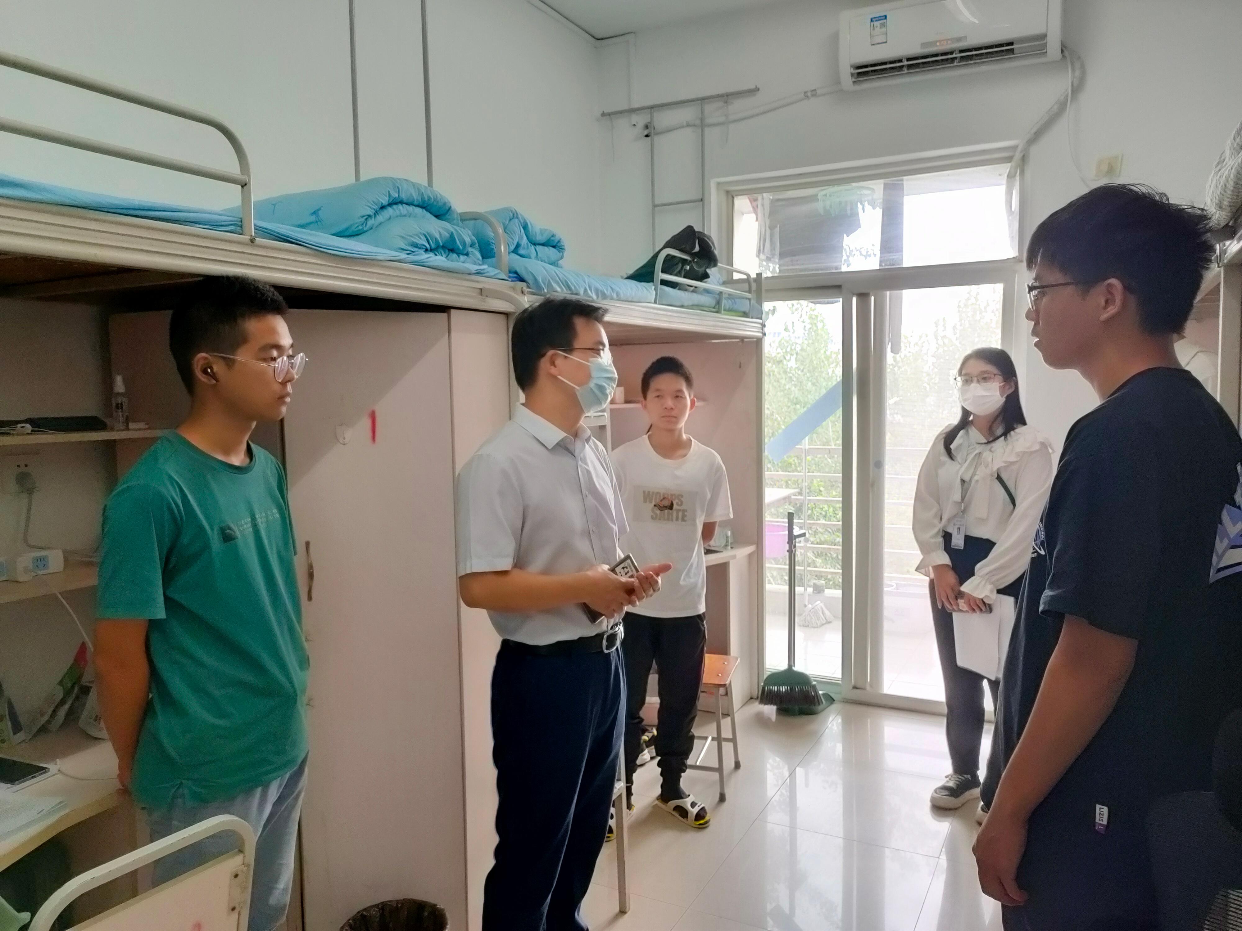 9月9日下午,学院党委书记陈勇代表学院党政班子在中秋节前一天深入学生公寓慰问2022级本科新生,辅导员老师郑纪伟、王誉静、罗莉一同前往。陈勇与同学们亲切交流,关心同学们的学习生活情况,鼓励他们好好学习,不要沉迷游戏。陈勇叮嘱同学们不要让“躺平”成为自己停滞不前的借口,要尽早明确新的奋斗目标,规划好大学生涯,培养优良的习惯,有大志向、大格局、大情怀。9月5日中午,甘孜泸定发生6.8级地震,学校震感明显。不少外省的同学第一次经历地震,陈勇专门询问了同学们地震中的感受,结合自身经历告诉同学们在交大学习不要担心地震。