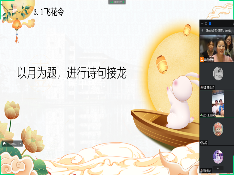 2022级硕士1班和5班联合开展了 “全民战‘疫’,喜迎中秋”线上主题班会。色情文学