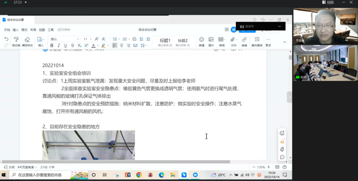高分子实验室周祚万教授课题组电催化方向小组于2022年10月14日在九里校区综合楼222号会议室召开了实验室安全主题培训会,李金阳副教授和全体电催化小组成员参加培训会。