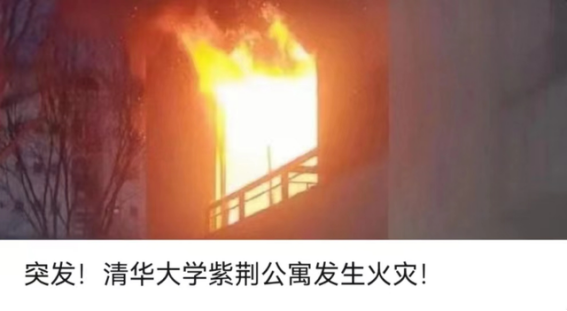 2017年5月17日凌晨4时许,清华大学紫荆学生公寓16号楼起火,该公寓6楼一处房间内,电动车电池充电时发生火情。