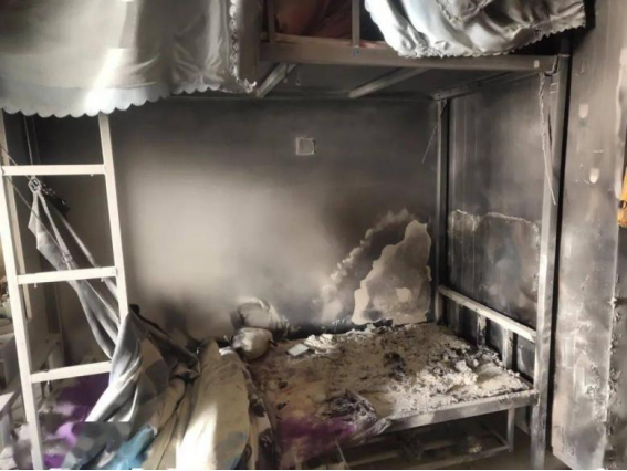 2020年9月21日,华南农业大学燕山区3栋某宿舍房发生火情。经现场调查,起火点位于该宿舍南侧右边铺位的桌面,基本判断为电气火灾,初步分析是疑似插线板接触不良,插板的插头没有断电,导致电动车充电器的变压器过热燃烧,最终烧毁床铺、衣柜、空调等物品,全宿舍墙面及天花板被浓烟熏黑,宿舍无法正常使用。