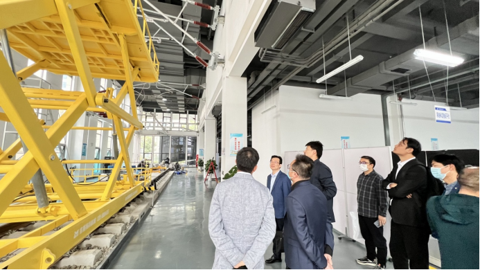 公司副董事长于龙首先带领访问组的老师们参观了位于大厦一楼的实验室及产品展厅。展厅内产品种类繁多,涉及到受电弓、高铁屏蔽门、振动检测台。于龙进行了深入细致的讲解,大家都对唐源电气的科研、研发实力非常震撼。