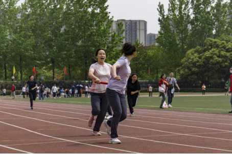 首先进行的是材料健儿和老师以个人为单位的跑步比赛