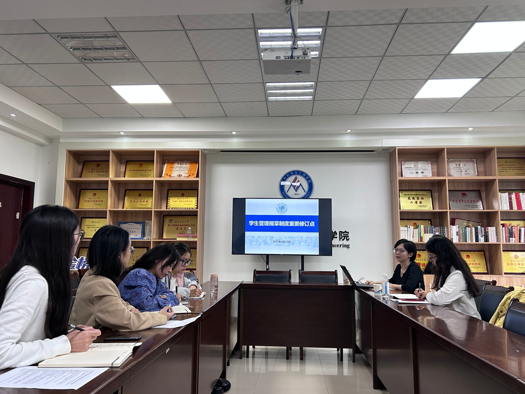 组织本、研辅导员对新修订的11项学生管理规章制度进行学习,本次活动由学院党委副书记熊钰领学。