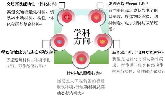 是我国轨道交通人才培养与科学研究发源地,材料学科聚焦于国家“交通强国”重大战略,致力于轨道交通材料国产化升级创新,形成了轨道交通材料设计理论与方法、先进成型制备、先进焊接与连接、全生命周期服役安全可靠性评价的理论、技术研究体系,全面支撑了国家轨道交通材料自主自强,引领了未来轨道交通发展方向,建设形成了以轨道交通材料为特色的人才培养和科技创新基地。ESI学科排名稳步提升,晋位到全球第191位(截止2023年11月),居全球前1.43‰。