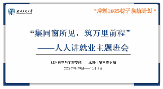 组织开展的“集同窗所见,筑万里前程”人人讲就业主题班会于近日顺利落下帷幕。本次主题班会,是学院为2025届本科毕业生精心谋划的“冲刺2025材子启航计划”就业指导系列活动的重要组成部分。