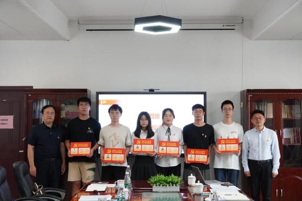 与会领导为新发展学生党员宿舍授牌,激励学生党员在日常学习生活中更好发挥模范带头作用,促进文明宿舍建设。学生党员邓思麒带领新党员同志进行安全文明宿舍宣誓,号召大家时刻铭记党员义务和责任,用自己的实际行动为其他同学做好表率。