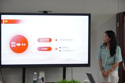 学院园区工作负责人、学生党支部指导老师张若男领学了学校《学生公寓管理办法》相关条款,重点介绍了园区安全检查工作标准及要求。她希望学生党员在园区安全工作中要主动亮身份,展作为,主动学习纪律,模范遵守纪律,为建设和谐稳定的平安校园而努力。