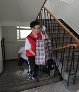 辅导员熊心怡召开年级大会,针对宿舍倒迁进行整体工作部署,将可能发生的情况进行了演示和说明。宿舍倒迁工作分为四个阶段。第一阶段:同学提前将大部分个人行李物品整理打包好,放置于寝室内或走廊边;第二阶段:同学将剩余的生活用品收拾整理好搬出原寝室;第三阶段:将行李物品搬迁至新宿舍,整理搬迁后的垃圾;第四阶段:工作小组走访宿舍查看情况。搬迁现场,师生志愿服务团队分工明确,通力合作,保证搬迁工作高效有序开展。