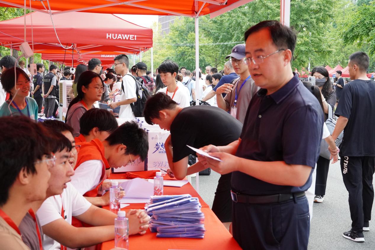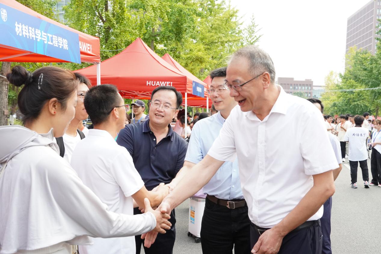迎新点走访慰问师生,与前来报道的新生亲切交流,及时了解学生需求。