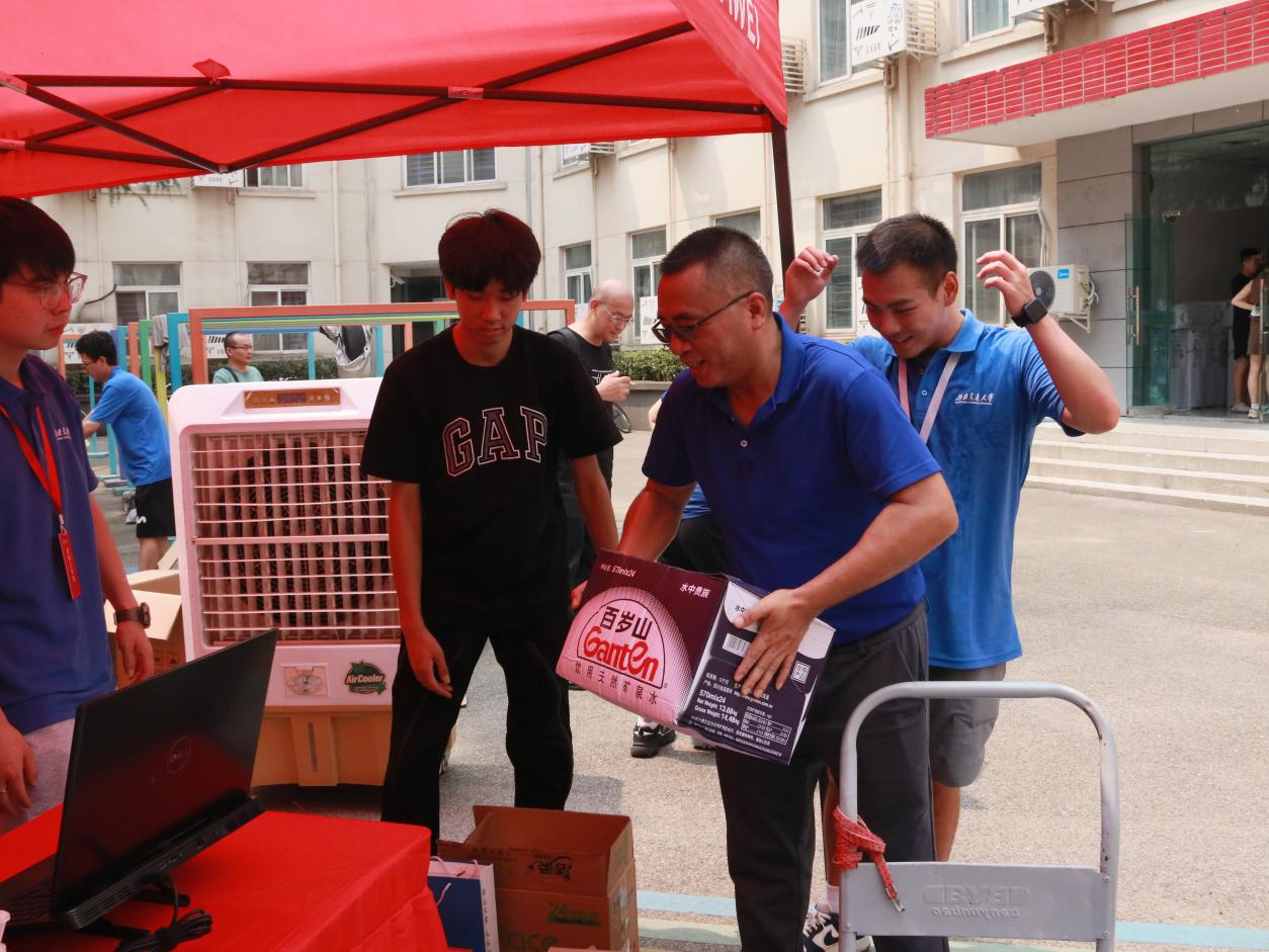 王良辉老师代表学院工会为迎新现场送去消暑佳品,并在现场关心了解新生报到情况,鼓励大家保持良好的精神状态做好迎新工作,展示色情文学