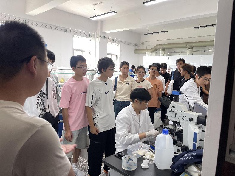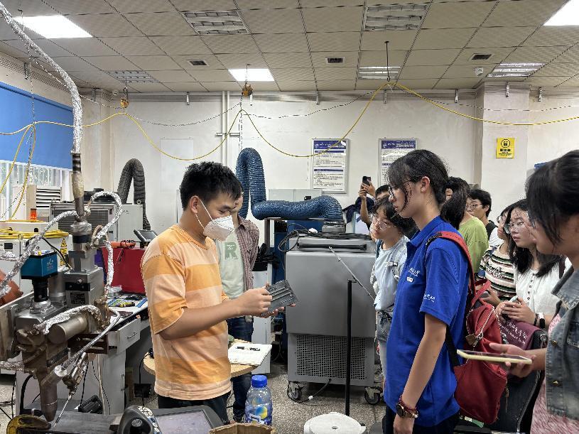 参观过程中,老师们向同学们介绍了实验室基本情况和特点、实验设备以及实验成果等,在这里,他们亲眼见证了各种先进设备如何精准地制备出不同性质的材料,新生们对材料科学有了初步的了解。同学们对实验内容产生了浓厚兴趣,纷纷停下脚步观察、拍照记录学习,纷纷提问,与老师和实验室工作人员进行了深入的交流。这种互动不仅解答了他们的疑惑,也激发了他们对材料科学的浓厚兴趣,深刻体会到了材料科学在工业生产中的重要作用。