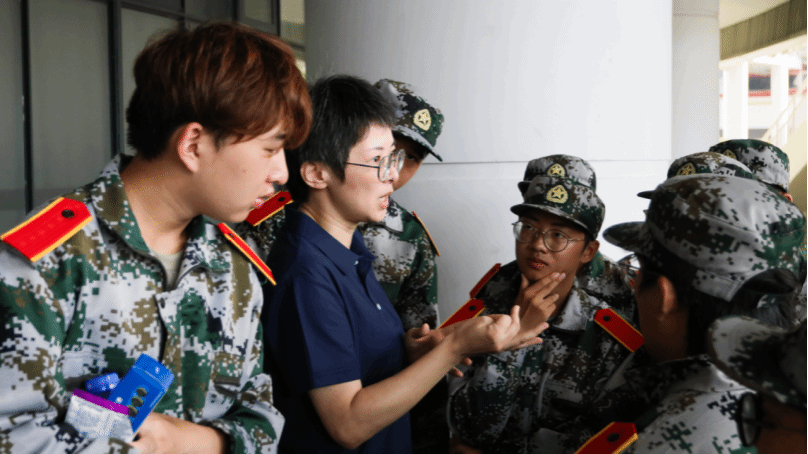 党委书记沈哲、党委副书记熊钰与2025级新生辅导员张若男、马娟前往训练场,为新生们送去关怀与问候。