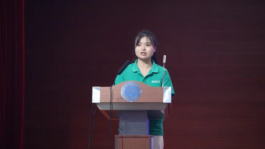 研究生张甜作为新生代表发言,回顾了之前在交大的求学历程并坦言未来科研路上难免会遇到各种挑战,但坚信这些正是学术道路上最珍贵的馈赠。她呼吁,新生们既要潜心钻研学术,也要胸怀家国,将个人研究融入国家发展大局,以“竢实扬华”精神为帆,在学术海洋中破浪前行,为交通强国建设贡献青春力量。