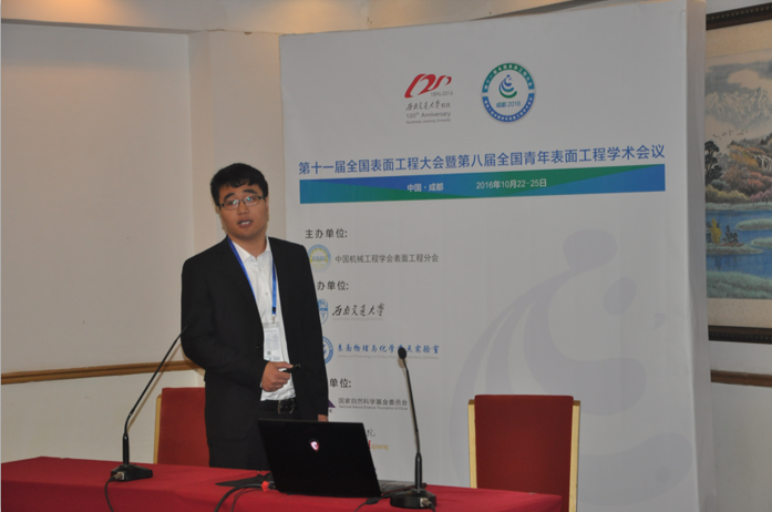 的苟国庆主持。会议时间为8:00-12:20,期间分别由柯培玲、詹胜鹏、柴利强、刘瑶瑶、聂军伟、陈文龙、刘晓梅等做会议报告。报告内容包括:《MAX相涂层制备与性能研究》、《无定型聚乙烯摩擦机理及界面微观特性的分子动力学模拟研究》、《C和N对MoS 2基薄膜显微组织、力学性能和摩擦学性能的影响》、《高温热处理对烧结聚晶金刚石真空摩擦学性能的影响》、《大型射频电感耦合离子源的工作特性研究》、《等离子喷涂-物理气相沉积 7YSZ 热障涂层高温氧化过程中的阻抗谱分析》、《微束等离子喷涂羟基磷灰石飞行粒子熔化状态以及相结构特征的研究》等。