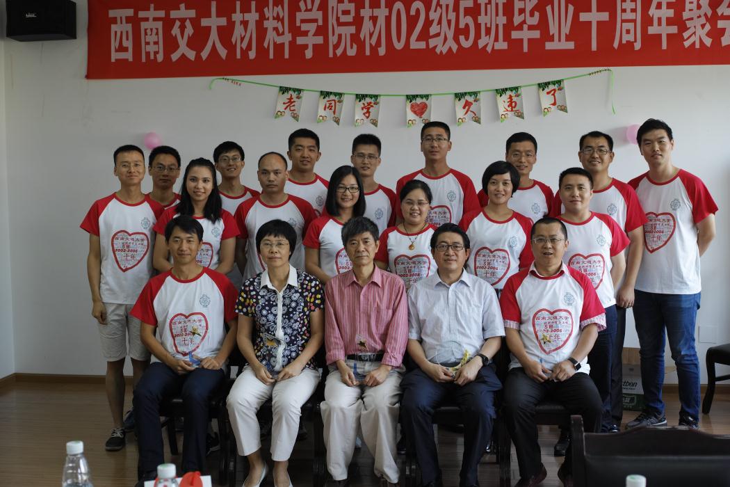 2006届材料科学与工程5班学生在九里校区2331会议室举行毕业十周年聚会。学院朱旻昊院长、陈兴莲书记、黄楠教授、冷永祥副院长(原2002-5班班主任)和后勤集团副书记高磊(原色情文学
