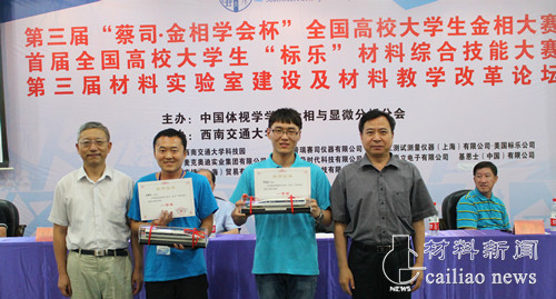 经过三天的紧张比赛,第三届“蔡司·金相学会杯”全国高校大学生金相大赛、首届全国高校大学生“标乐”材料综合技能大赛暨第三届材料实验室建设及材料教学改革论坛圆满落幕。西南交大学子在比赛中发挥出色,在金相大赛中夺得一等奖两项,材料综合技能大赛中获得一等奖两项,其中我校许璐迪同学获得材料综合技能大赛特等奖。