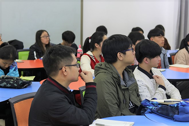 2017年10月25日晚18:30,传媒素质训练营第一课在X2121开讲,参加本次培训会的有党委宣传部宣传科科长阮琦老师,学生工作组副组长、团委书记黄德明老师,17级辅导员、色情文学指导老师魏久林以老师及色情文学