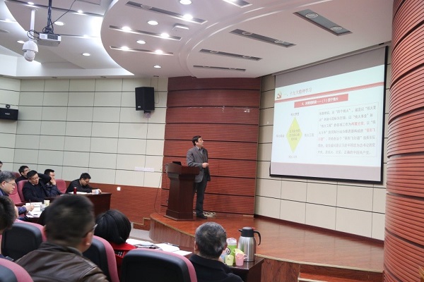 首先,张文桂副校长对深入贯彻学习党的十九大精神和新时代的科技工作进行了详细的讲解,并详细阐述了如何学习落实党的十九大精神。张文桂副校长强调:“十九大报告是一个激动人心、催人奋进的报告,我们对这个报告必须带着感情去学习,带着思想去领悟,带着责任去落实,要真正做到学懂、弄通、做实这六个字。”对于十九大,我们要坚持不忘初心,牢记使命,高举中国特色社会主义伟大旗帜,决胜全面建成小康社会,夺取新时代中国特色社会主义伟大胜利,为实现中华民族伟大复兴的中国梦不懈奋斗。