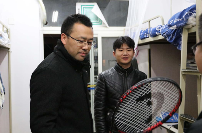 在看到某位同学的网球拍后,贺剑副书记(主持工作)拿起网球拍与同学们聊起了网球运动,叮嘱同学们在学习之余一定要注意锻炼身体,强健自己的体魄。
