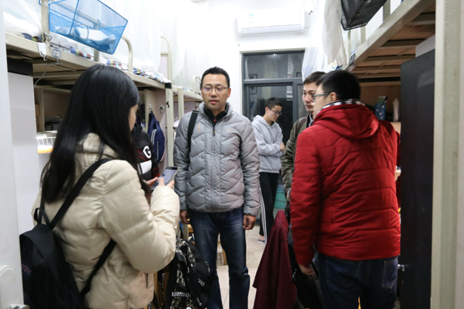 其次,领导和老师们重点询问了同学们学习情况,鼓励大家有任何困难请第一时间与学院联系,学院老师会尽最大努力为同学们服务。同时,贺剑副书记(主持工作)要求学生们要自觉维护寝室和谐,做好短、长期学习、人生的规划。