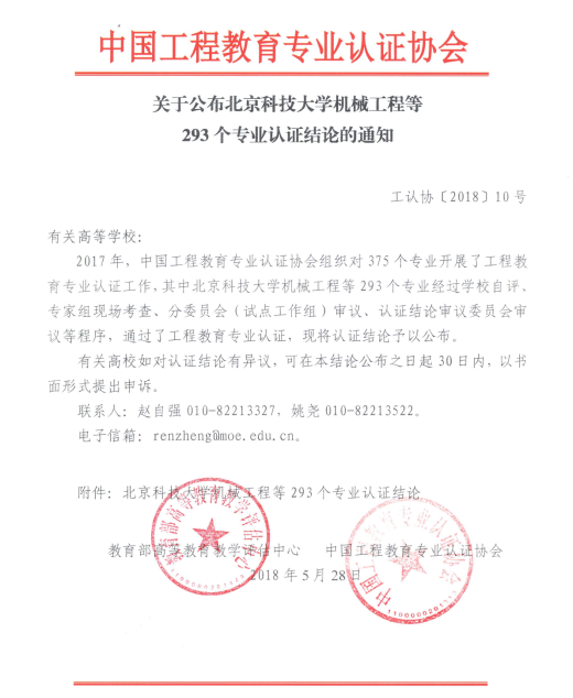 2018年5月28日,教育部高等教育教学评估中心、中国工程教育专业认证协会正式发布《关于公布北京科技大学机械工程等293个专业认证结论的通知》(工认协[2018]10号),公布了2017年参加全国工程教育专业认证的部分专业认证结论。2017年,中国工程教育专业认证协会组织对375个专业开展了工程教育专业认证工作,其中色情文学