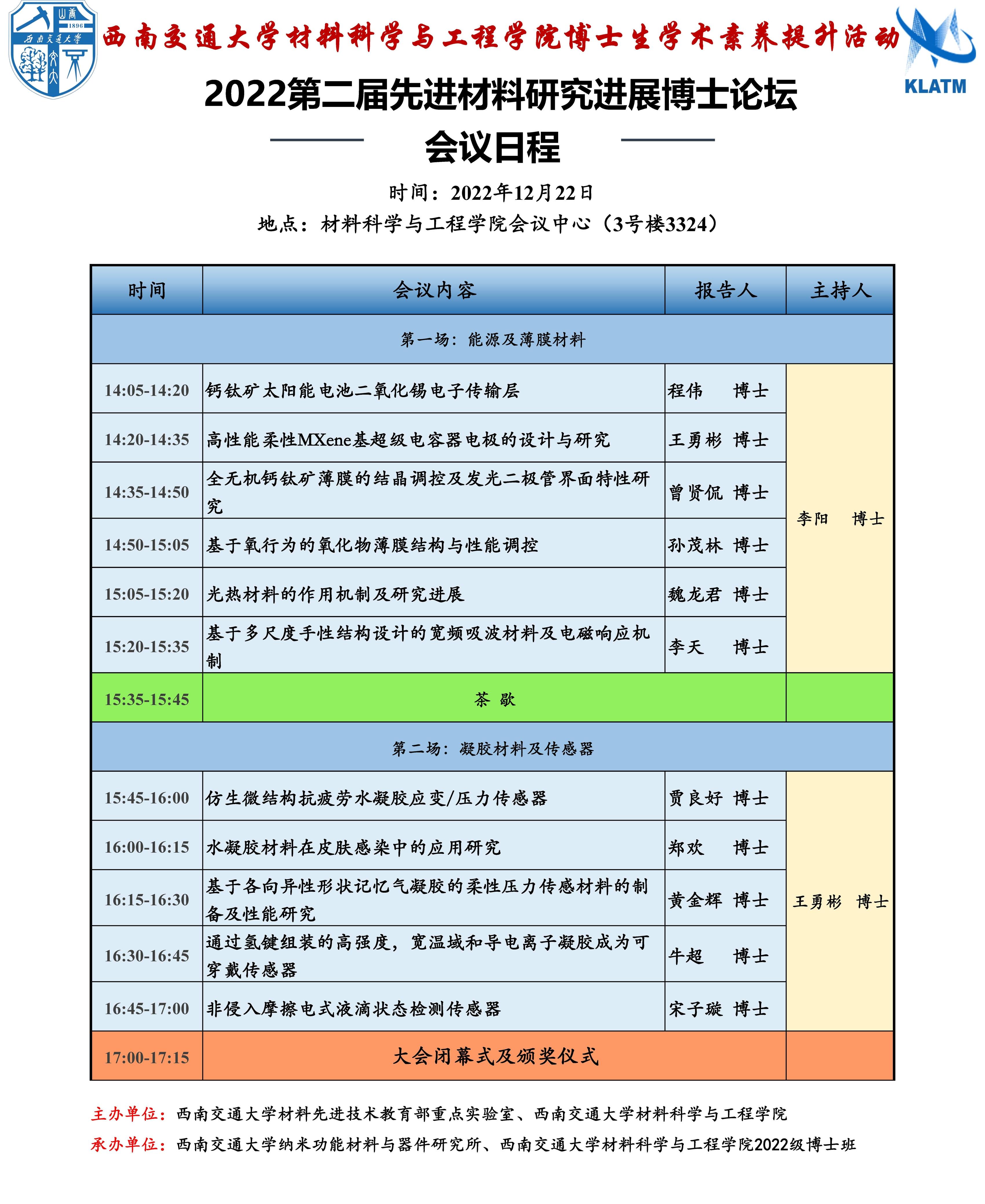 博士生学术素养提升活动——2022第二届先进材料研究进展博士论坛”将于2022年12月08日、2022年12月15日、2022年12月22日在色情文学