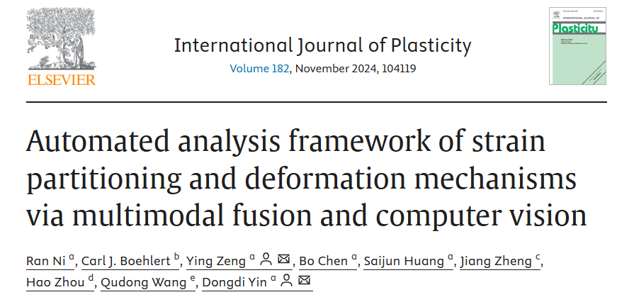 尹冬弟教授、曾迎副教授,博士生倪然等针对上述难题,基于多模态数据融合和计算机视觉,提出了一种应变分配与变形机制的自动分析框架,并成功应用于Mg-Y合金的变形研究,从而验证了此分析框架的有效性。此算法特别考虑了晶内和晶间的变形协调与竞争关系,可以在纳米分辨率与大视场下,自动地、统计地、定量地分析晶内滑移活性、晶间滑移转移、晶界滑移、以及相关的应变分配。此框架可以帮助深入理解包括镁合金在内的金属材料的变形行为与协调机制。相关工作以“Automated analysis framework of strain partitioning and deformation mechanisms via multimodal fusion and computer vision”为题发表在金属材料和固体力学领域高水平期刊International Journal of Plasticity。论文主要合作者还包括密歇根州立大学Carl J. Boehlert教授、辽宁材料实验室周浩研究员,重庆大学郑江副教授,上海交通大学王渠东教授。