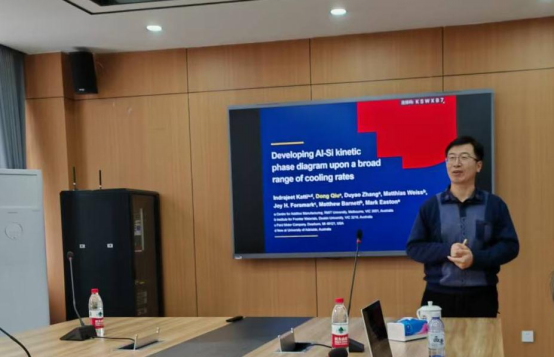 师生带来题为《对高速冷却条件下近共晶合金动力学相图的发展与完善》的精彩学术讲座,讲座由刘艳副院长主持。