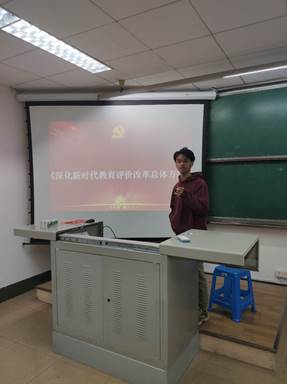 最后,李少智同志讲述了不断完善不同主体的评价办法的内容,引导同志们讨论与深刻理解,明晰教育评价改革是一项世界性、历史性、实践性难题,涉及多重因素、不同主体,牵一发而动全身,被喻为教育综合改革“关键一役”和“最硬一仗”。在认真学习并讨论《深化新时代教育评价改革总体方案》后,极大促进了支部的同志的党性思想,紧跟党的步伐。
