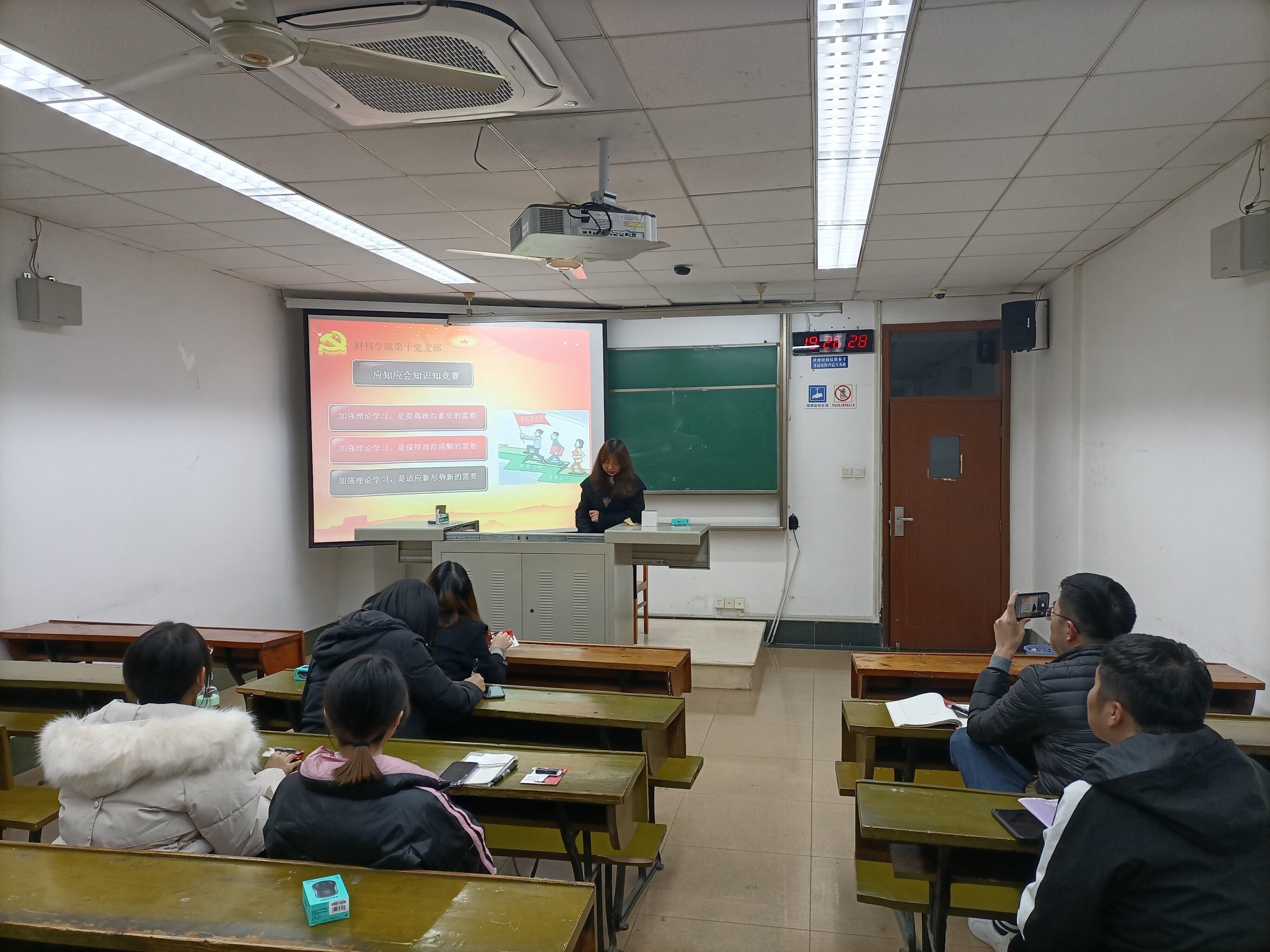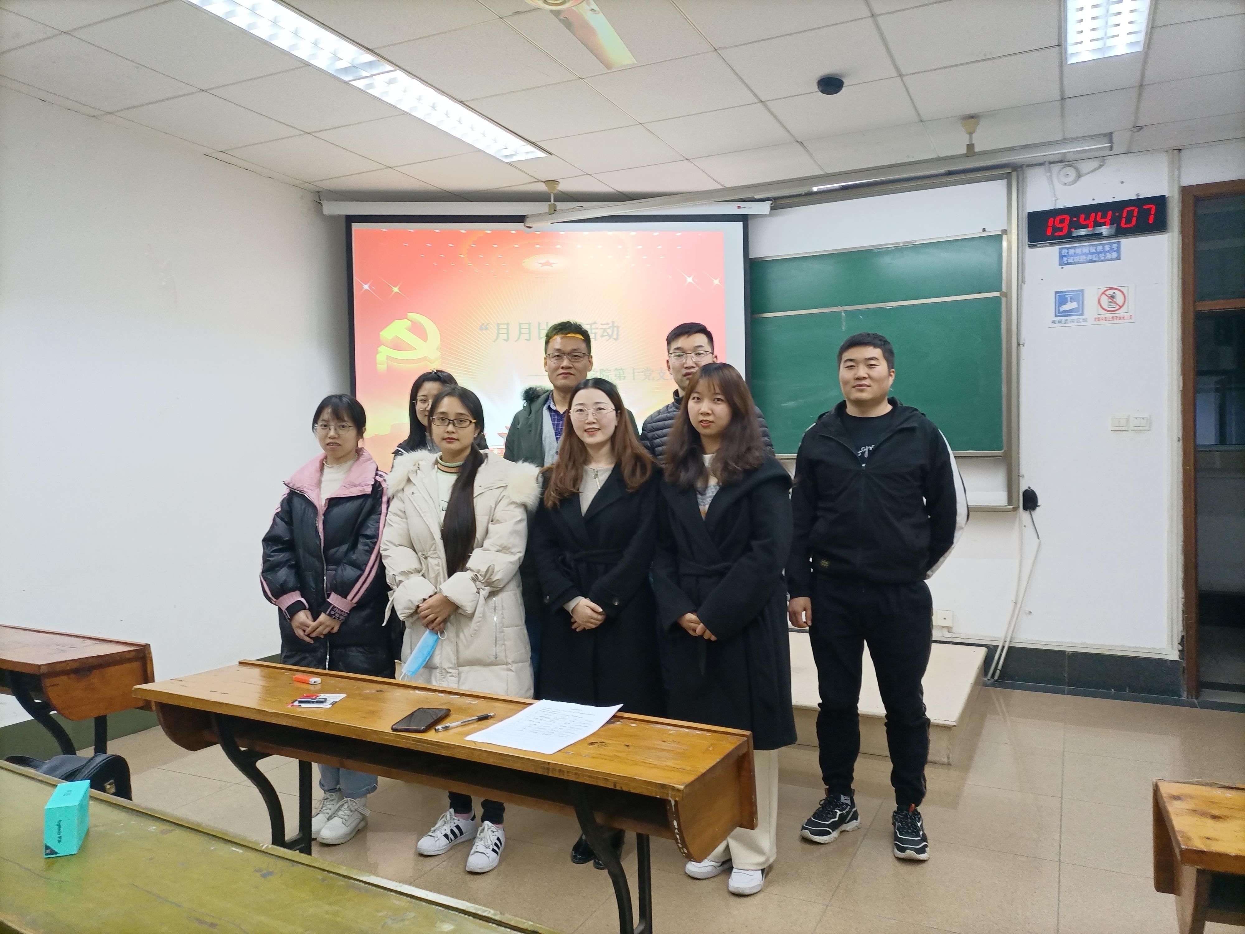 研究生第十党支部为深入学习贯彻习近平新时代中国特色社会主义思想,深入学习贯彻习近平总书记关于学校党建和思政工作的重要指示批示精神,推动学生党支部深入学好党史、新中国史、改革开放史、社会主义发展史,根据学院党委部署和本支部的实际学习情况,于逸夫楼4404A开展“月月比”活动,对支部同志阶段性学习成果进行考察、评比和总结。