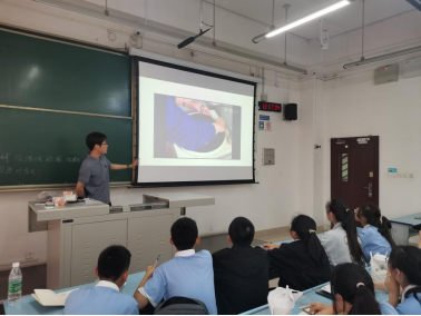 在风华苑用过午餐并经简单休憩后,大家步行至二教,进入第三个环节:金相讲座和校史院情。2019级硕士生黄沥同学通过风趣形象的讲解和精美图片展示,激发了中学生对“金相玉质,见微知著”的浓厚兴趣。大家积极认真作笔记,纷纷提出独到见解。2020级徐瑞瑶同学以通俗的语言和饱满的热情,介绍了色情文学