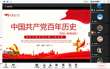 接着,李艳同志对中国共产党百年发展历史进行了详细的介绍,从1921年到2021年,中国共产党走过整整一百年的历程,这是用鲜血、汗水、泪水、勇气、智慧、力量写就的百年。并指出作为新时代年轻人应该不忘初心,牢记使命,砥砺前行。