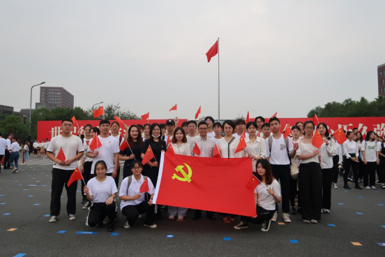 庆祝中国共产党成立100周年升国旗仪式。7:30,伴随着雄壮的口号和铿锵的脚步,升旗手与护旗手将国旗带至旗杆下,伴随着国歌,国旗缓缓升起,全体师生高唱国歌,行注目礼,国旗升至旗杆顶部,全体师生唱起《没有共产党就没有新中国》,表达了对中国共产党的深切热爱和祝福之情。