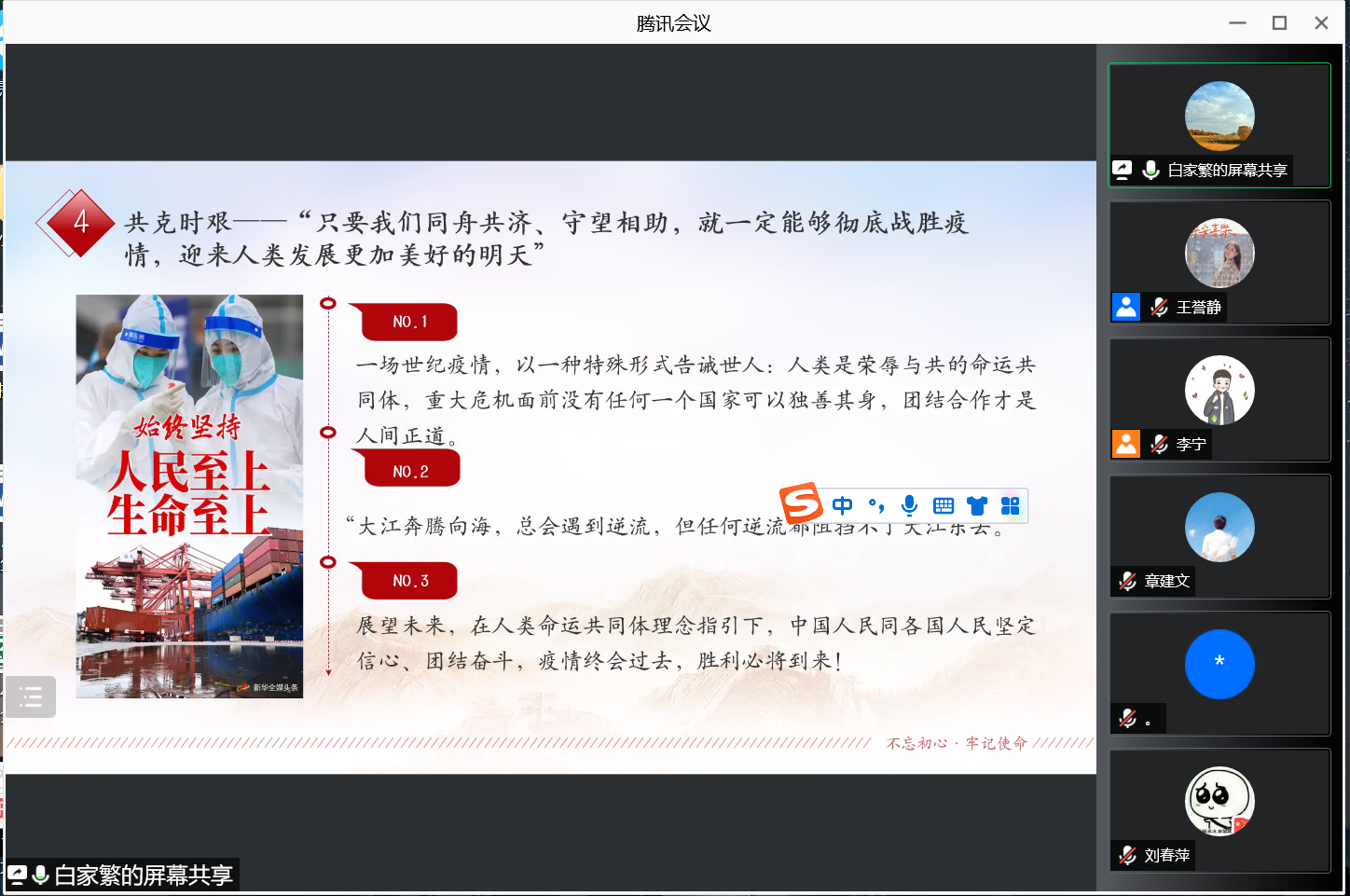 研究生第十党支部在线上组织开展了“携手同心 共守校园”主题党日活动,会议由支部书记王誉静同志主持,全体党员、入党积极分子及入党申请人参加了本次主题党日活动。