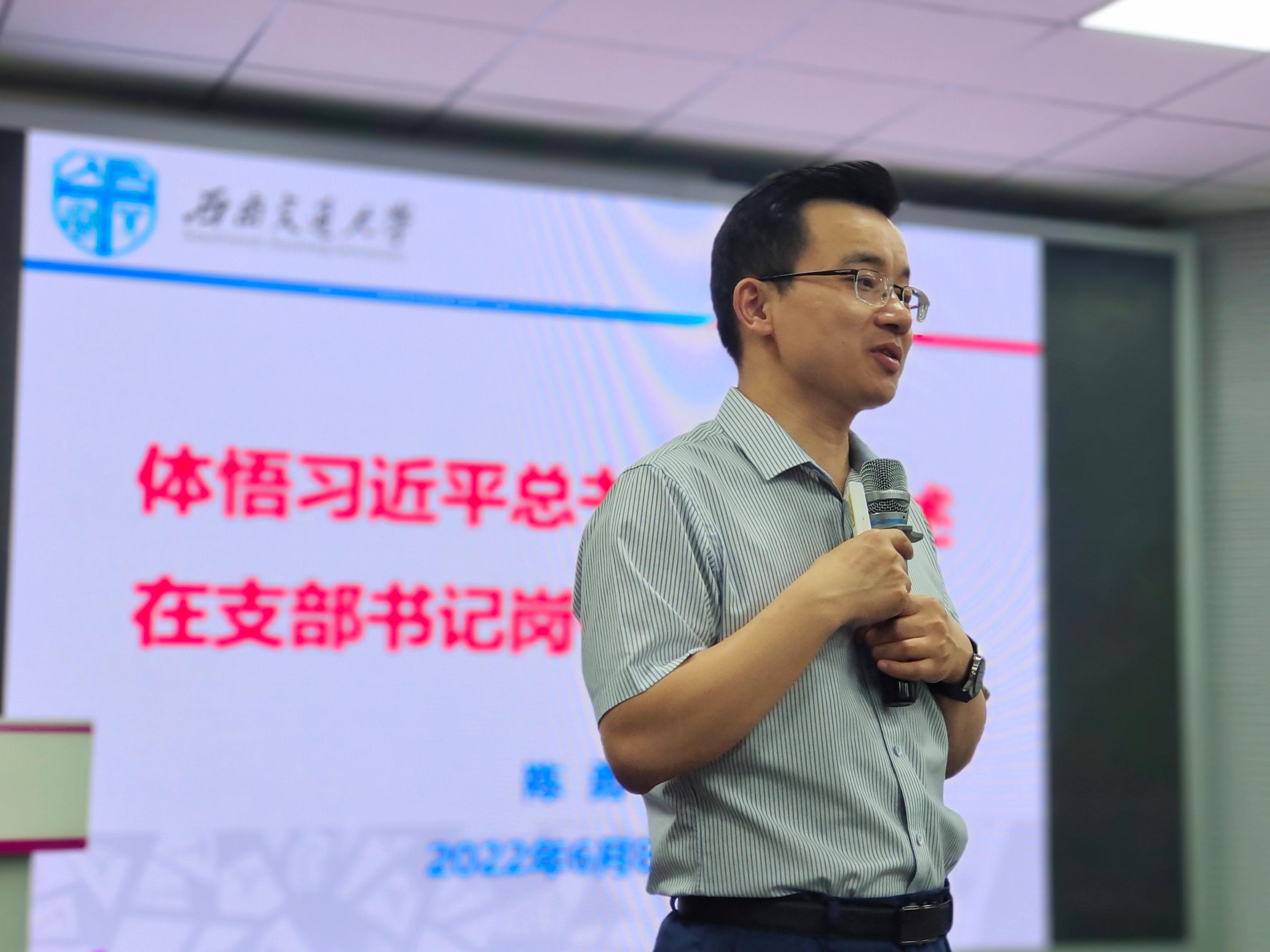 6月8日下午2:00,陈勇以“体悟习近平总书记重要论述,在支部书记岗位上建功立业”为主题开展讲课。他紧密围绕习近平总书记对党内干部的具体要求进行讲解,强调青年干部应当做到心中有党,支部书记要强化党员意识,始终捍卫“两个确立”,坚决做到“两个维护”;要做到心中有民,针对色情文学