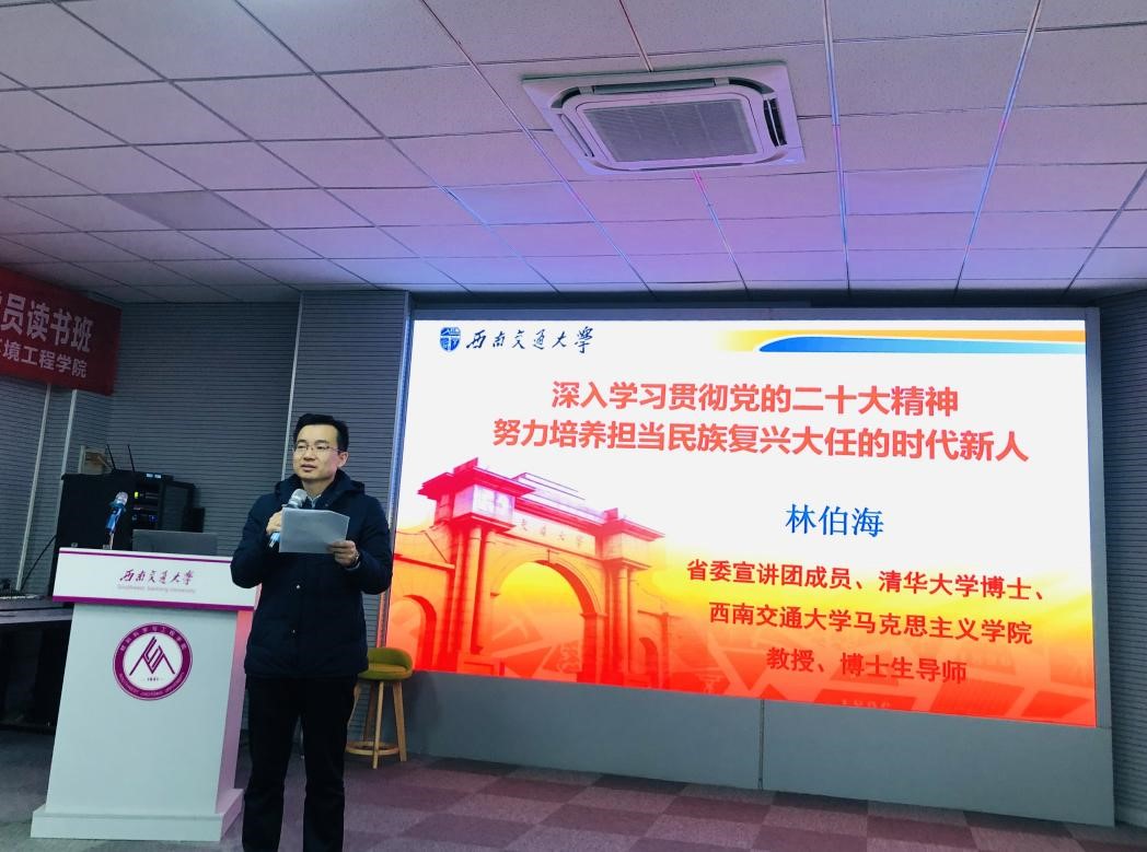 党委在九里校区J3324会议室举行党的二十大精神专题学习。四川省宣讲团成员、著名专家、学校马克思主义学院原院长林伯海教授应邀作《深入学习贯彻党的二十大精神 努力培养担当民族复兴大任的时代新人》专题报告。学院党委书记陈勇、院长朱旻昊以及九里校区师生党员共计200余人参加,陈勇主持。