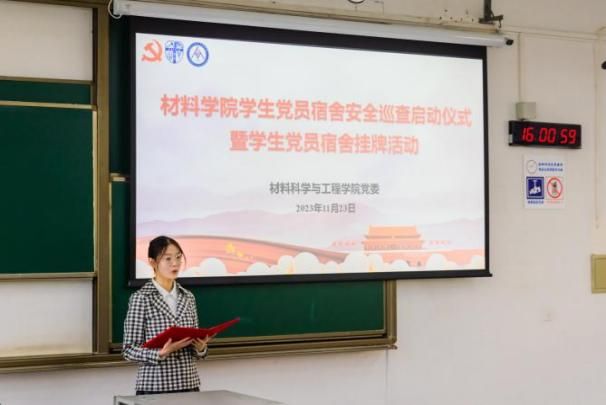 刘颖老师为大家介绍了学校宿舍安全检查工作情况。她指出,学校高度重视宿舍消防安全,不断加强检查力度,并介绍了检查中发现的突出问题。刘颖积极评价了学院在落实宿舍消防安全要求中的诸多有力举措,指出开展学生党员宿舍安全巡查和宿舍挂牌工作是发挥党建引领作用的重要实践,希望同志们认真工作,发挥实效。