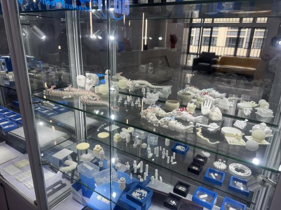 随后,支部成员进入打印工艺产线,实地考察直写成型(DIW)、立体光固化(SLA)等主流成型技术的生产流程,并现场观摩陶瓷3D打印设备的运行过程。通过近距离观察激光逐层扫描与材料精确堆积的制造过程,对“数字化制造”有了更为深刻的理解。