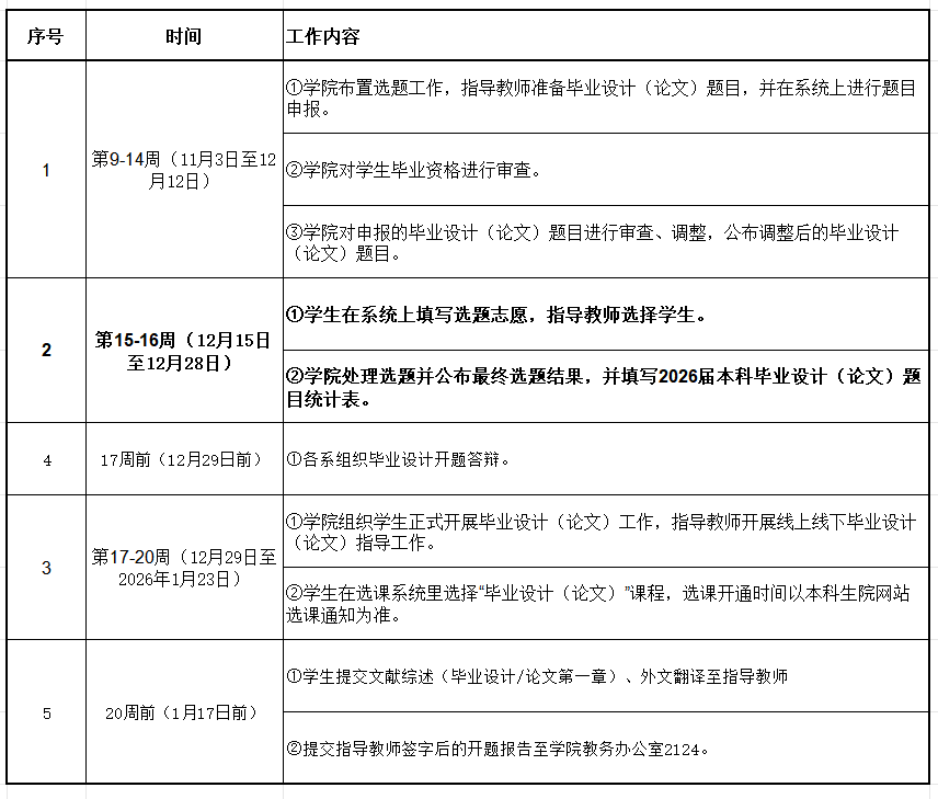 本科毕业设计(论文)教学大纲及质量标准建设指导意见》的要求,结合今年教学工作开展的实际情况,认真做好2026届本科毕业设计(论文)前期准备工作。