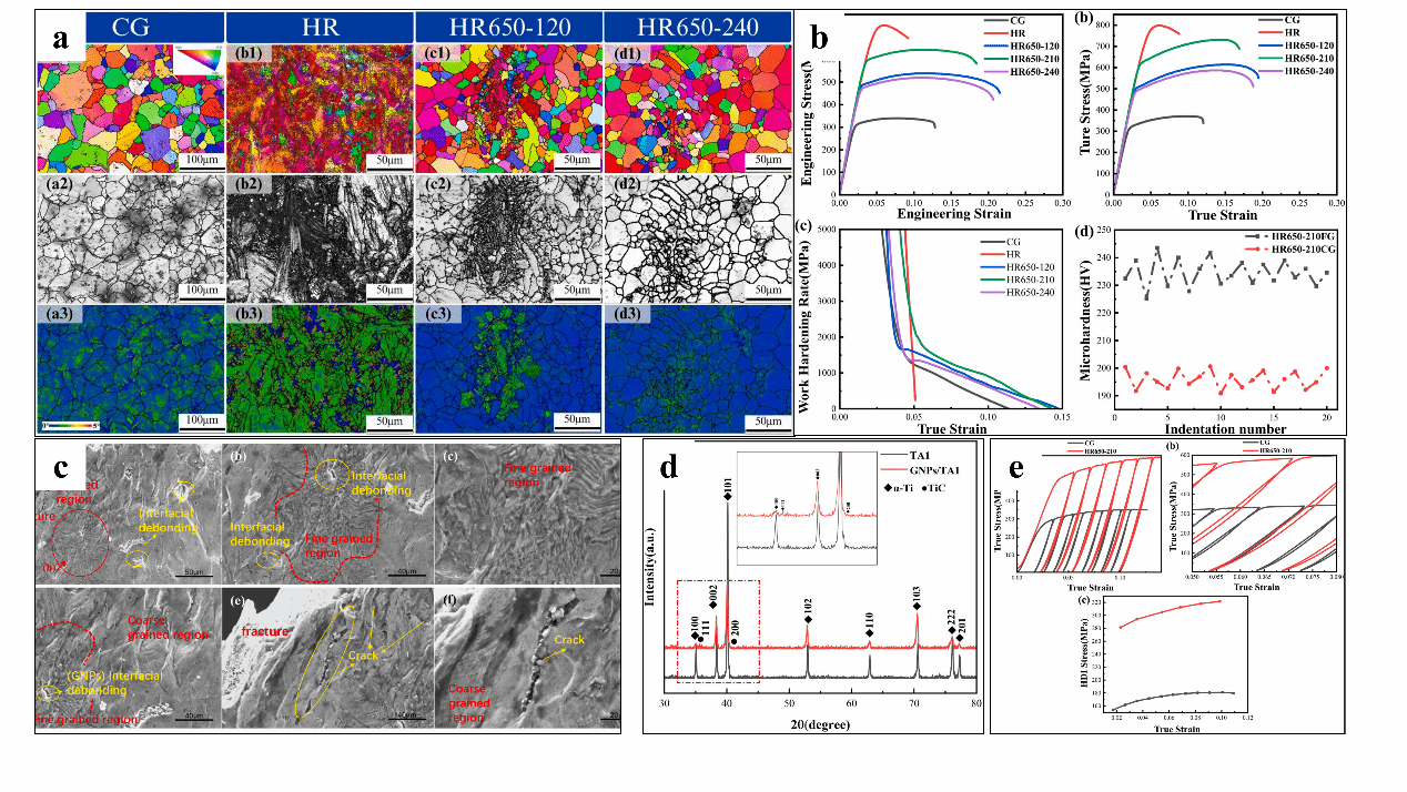 图2 论文组图:(a)EBSD图像(b)异构强度-延展性性能